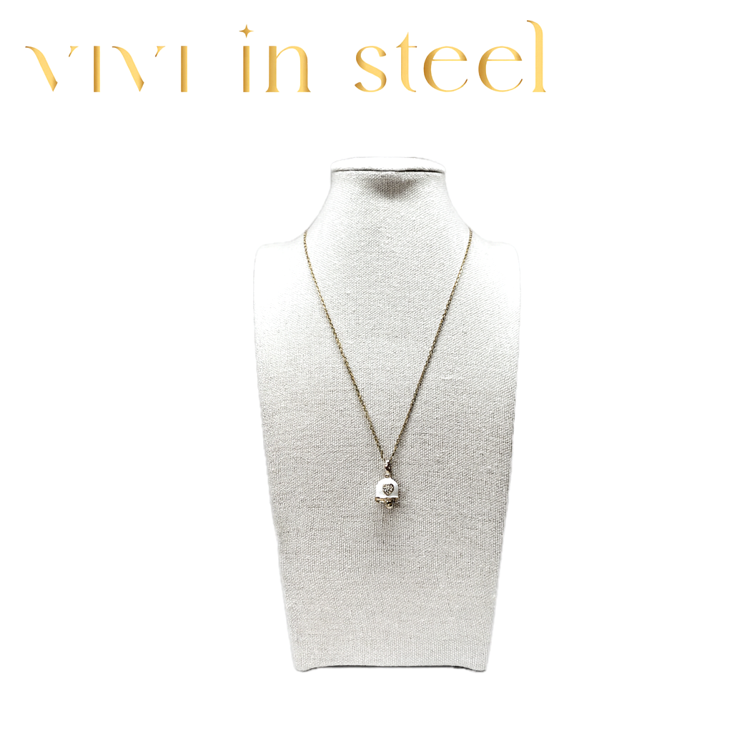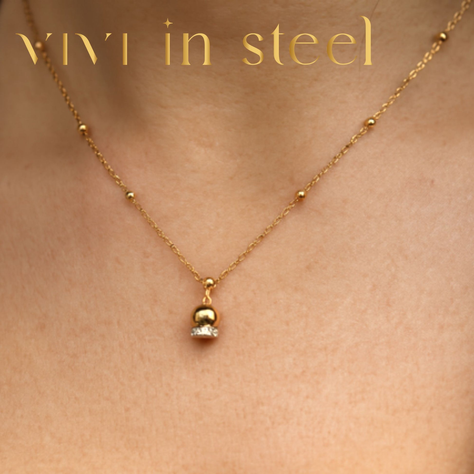 Collana in acciaio inossidabile resistente ipoallergenico con ciondolo pendente e strass!