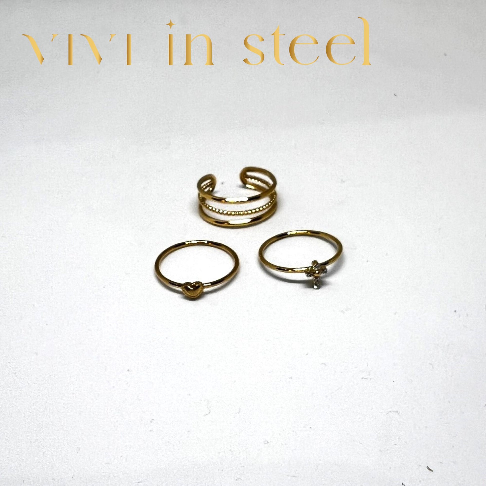 Anello in acciaio inossidabile ipoallergenico tris di anelli cuore, croce e fascia!!!